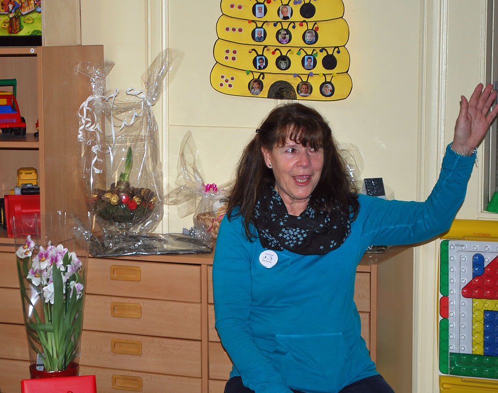 Natürlich wurde sie von ihrem Team und den Kindern gebührend verabschiedet. Es wurde gesungen, getanzt und gelacht, aber auch so manche Träne stahl sich in die Augen, denn alle hatten Tante Elke gern. Sie war immer eine engagierte, lebensfrohe und liebevolle Erzieherin und zuverlässige Kollegin.