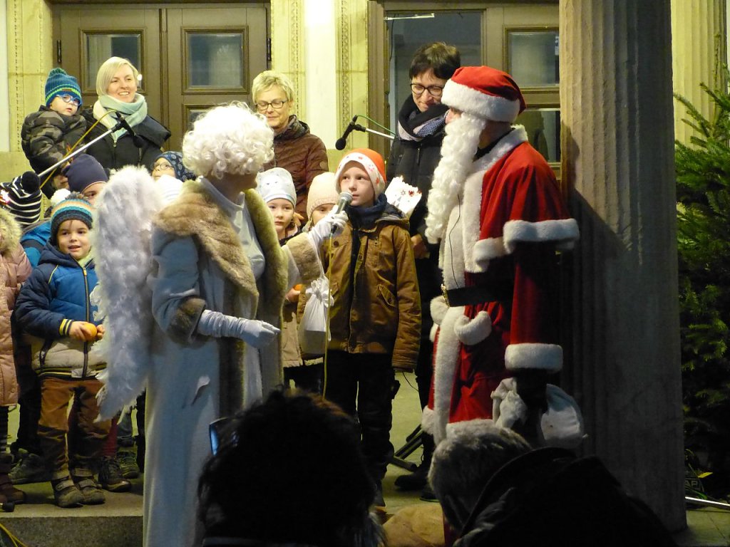 Im Anschluss verteilte er fleißig Postkarten seines Lieblings-Musicals, welches aufgrund des großen Erfolgs eine Zusatz Aufführung am 29.12. erhalten wird. Besinnlicher, aber nicht weniger musikalisch präsentierte sich die Diakonie Nordhausen. Kinder der Diakonie-Tagesstätten sangen zwei eher seltenere Weihnachtslieder.