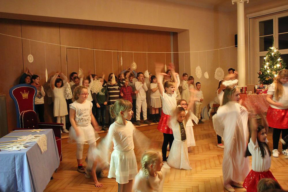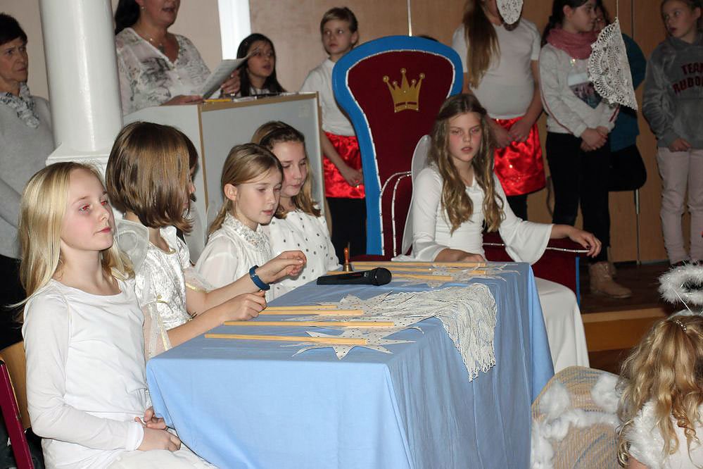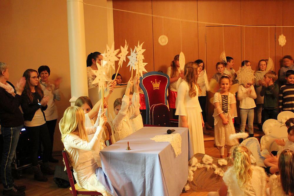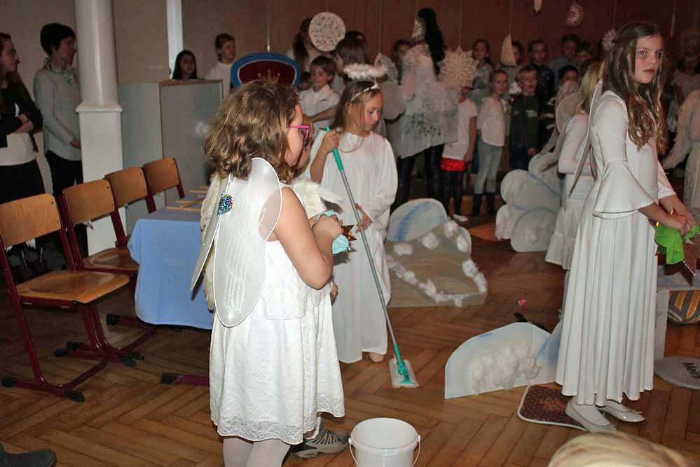 Im Zentrum stand natürlich wieder das traditionelle Märchenspiel. Wobei Märchen im strengeren Sinne war es nicht, aber es ging in einer Reise zu den Engeln und dort fand die "Hitparade der Engel" statt, mit außergewöhnlichen Weihnachtsliedern, einfach Klasse gemacht.