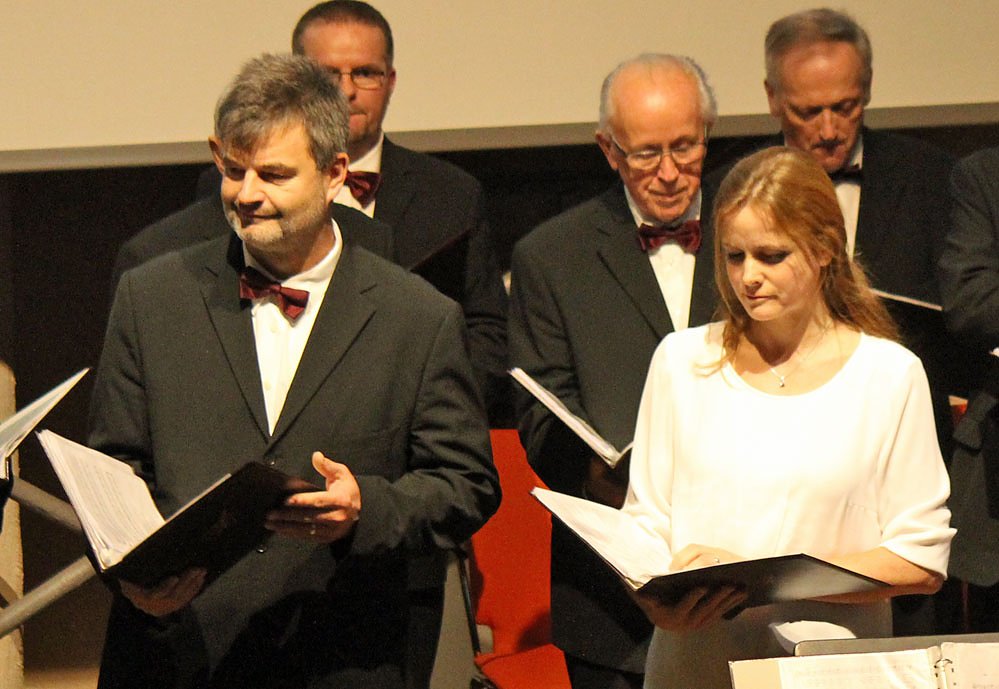 Anja Stracke-Wiesemann und Ralf Wiesemann als Duett (z.B. "O du mein Trost und süßes Hoffen) und Adolf Bretfeld mit der Mundharmonika glänzten als Solisten, siehe Bildergalerie, dort Adolf Bretfeld noch ohne Mundharmonika.