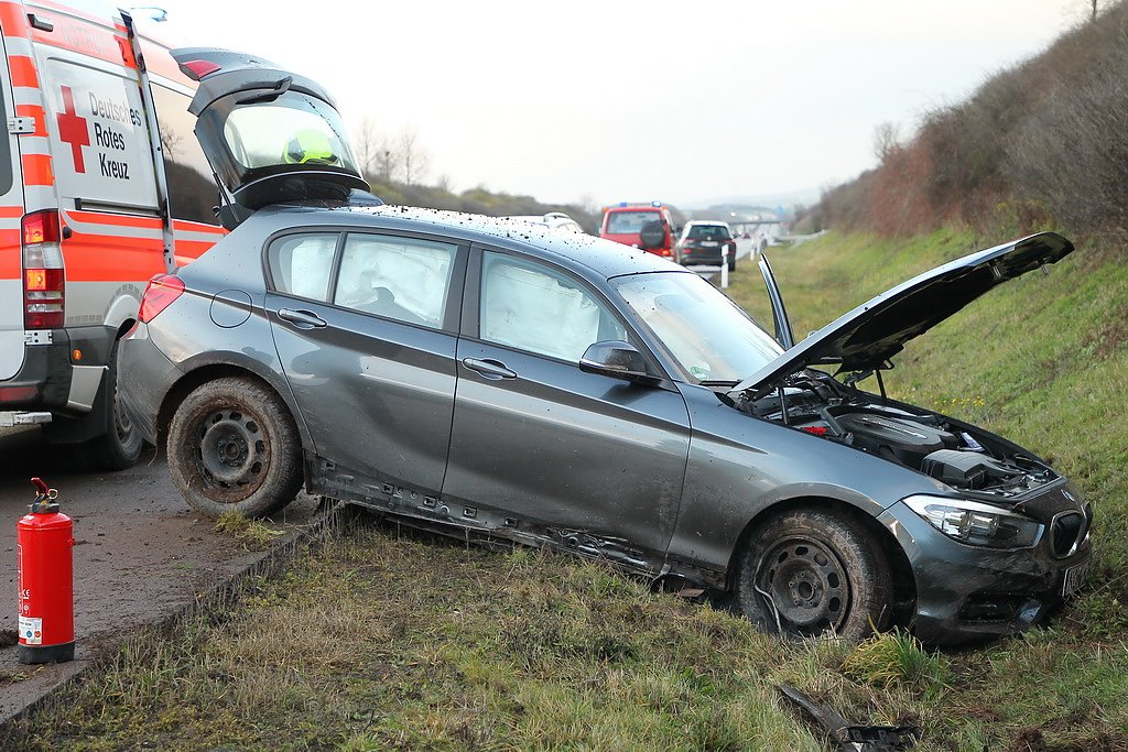 Aus noch ungeklärter Ursache kam ein 3er BMW kurz nach der Einfahrt zum Rastplatz Kesselberg nach rechts von der Fahrbahn ab, durchfuhr mehrere Meter den Graben und kollidierte dort mit einem Entwässerungsschacht. Danach kam er ersten Angaben zufolge wieder auf die Fahrbahn und schlug danach wieder rechts in die Böschung ein.