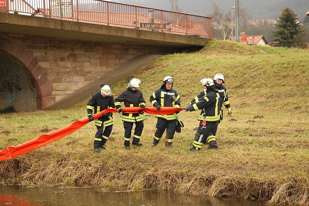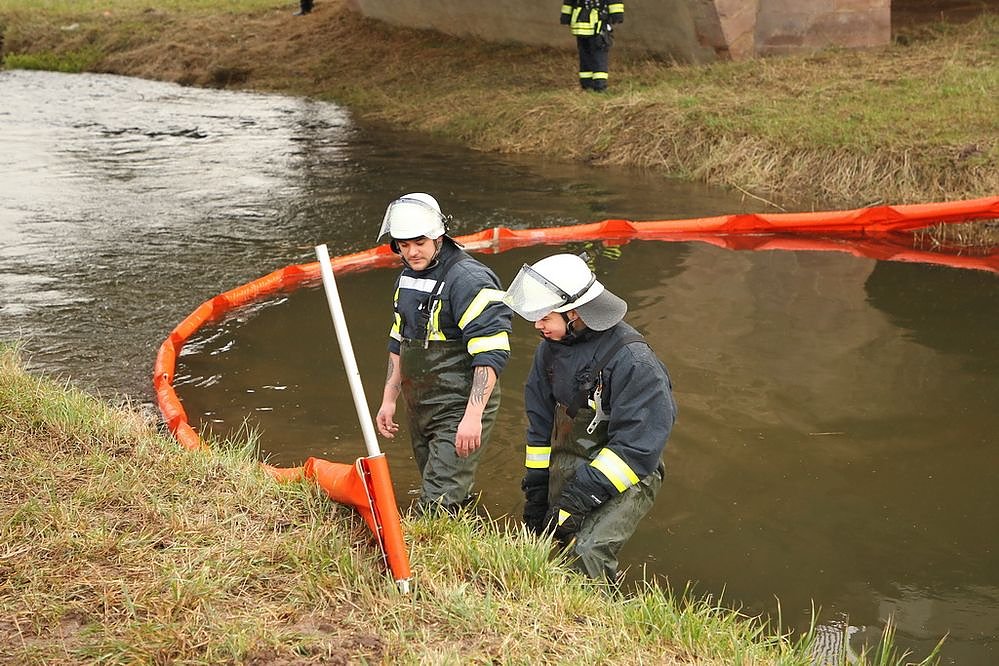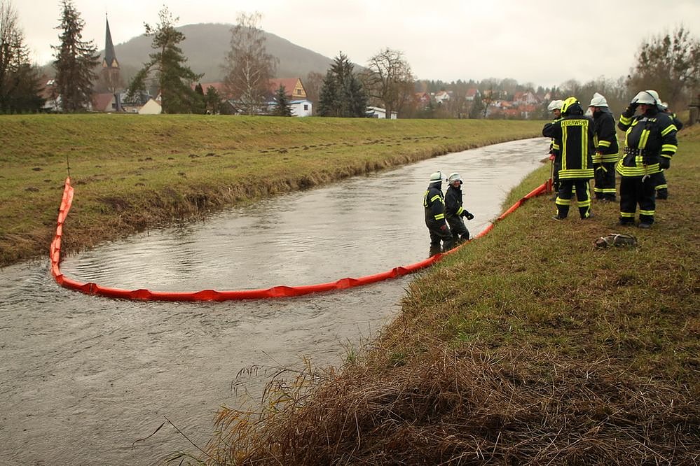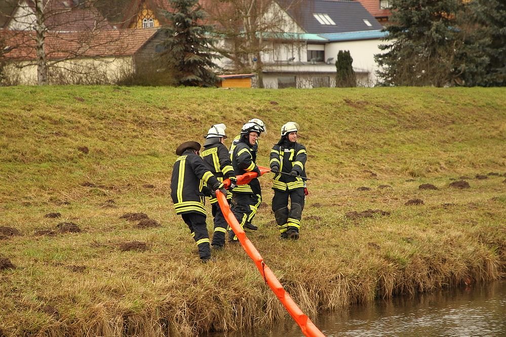 Durch einen aufmerksamen Spaziergänger wurde am Mittwochnachmittag ein Ölfilm auf der Wipper in Sondershausen bemerkt. Das Ölgemisch gelangte aus einem Regenwasserkanal in den Fluß. Nach einiger Zeit konnte der Ursprung des Öles auf einem Firmengelände in der Sondershäuser Schachtstraße ausgemacht werden. Hier war nach einem Hydraulikdefekt Öl ausgetreten und Restanhaftungen wurden durch den einsetzenden Regen in den Kanal gespült worden.