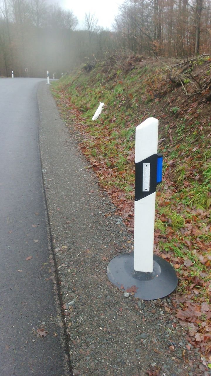 Wer nimmt solche Baustellen ab, damit auch gezahlt wird? Wir dürfen stolz auf die neuen Leitpfosten sein. Die alten waren wahrscheinlich nicht mehr zu gebrauchen oder sind vielleicht einer neuen Richtlinie zum Opfer gefallen. Aber wohin nur mit den alten Leitpfosten? Ob sich Hartkunststoff schreddern lässt? Der Beweis liegt an der Straße und im Wald!