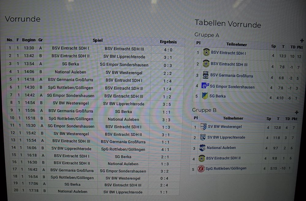 Die Ergebnisse aus den Vorrundenspielen gibt es in der Bildergalerie.