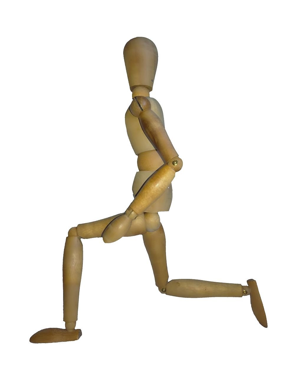 Ein weiter Schritt nach vorne, dann werden die Knie gebeugt bis sich Knie und Ferse auf einer Linie befinden