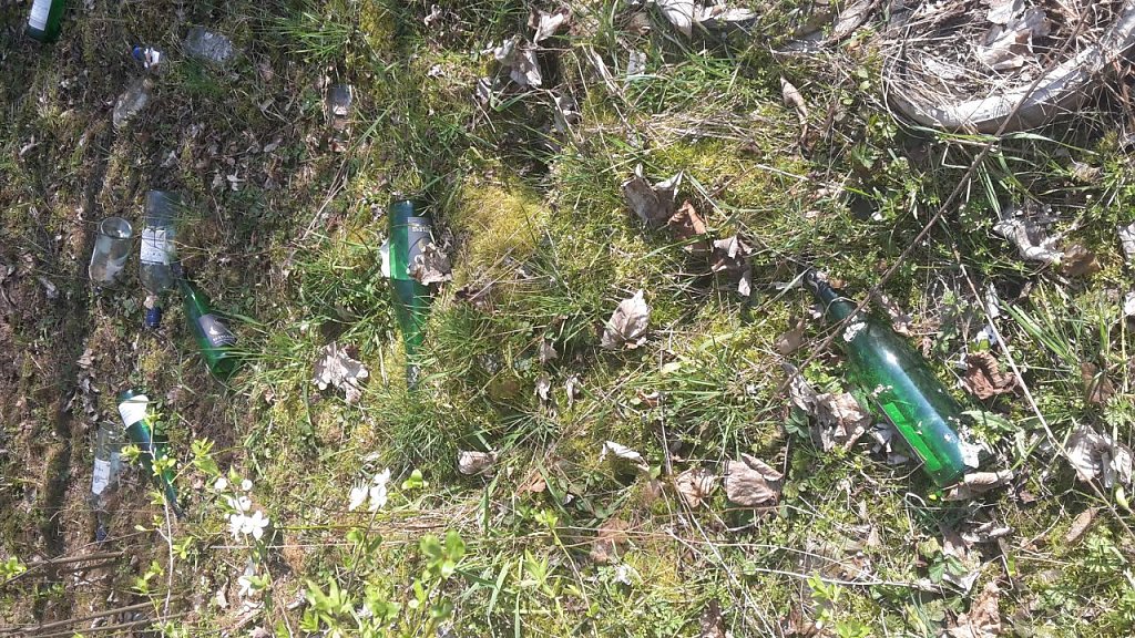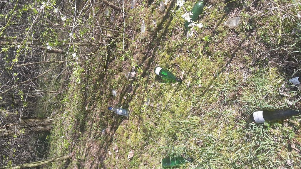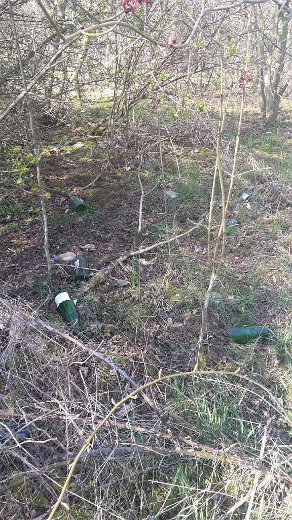 Offensichtlich wird dieses Versteck gern als Treffpunkt genutzt, aber dass eine solche Masse an Flaschen und auch anderem Müll zurückgelassen wurde, lässt mich doch sehr am Verstand und der Erziehung der Verursacher zweifeln! Ich hoffe und erwarte, dass diejenigen, die diese Mengen an Flaschen dort hinterlassen haben, sich aufraffen und den Müll beseitigen.