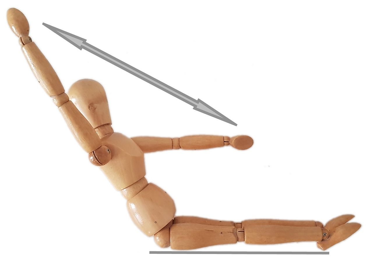 In der Ausgangsstellung befinden wir uns im Strecksitz, dann wird der Oberkörper langsam nach hinten gebeugt und gehalten