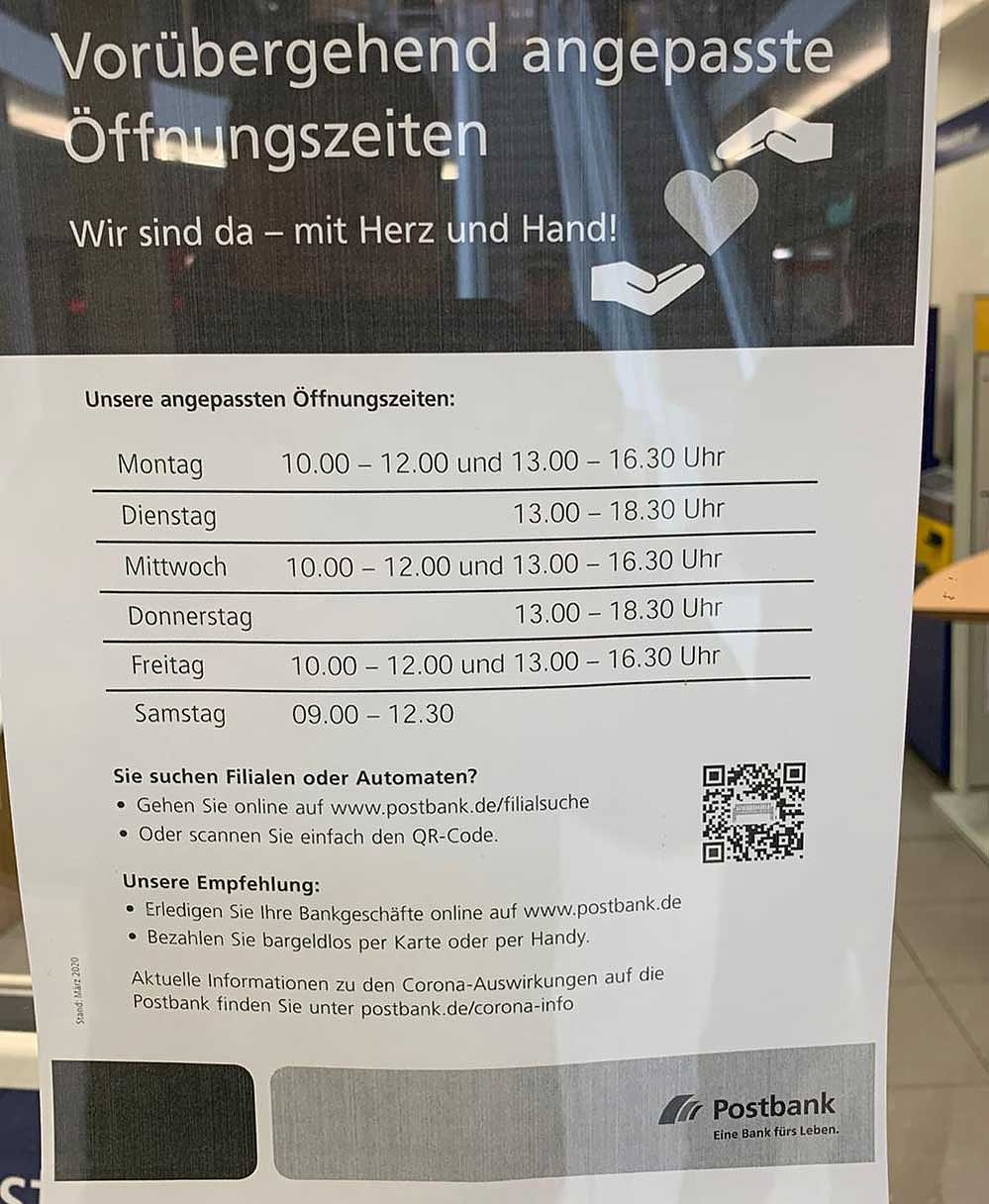 Und so bildeten sich in der Galerie am Schlossberg von Sondershausen eine lange Schlange, natürlich ohne Abstandsmarkierung, weil keiner der Postkunden damit rechnete, dass statt 09:00 Uhr die Postfiliale erst eine Stunde später öffnete. Trotz verkürzter Öffnungszeiten, war nur ein Schalter geöffnet, so der Leser gegenüber von kn. Auch die verkürzte Öffnungszeit, wird wohl am Nachmittag viele Bürger überraschen, so der Bürger gegenüber kn.