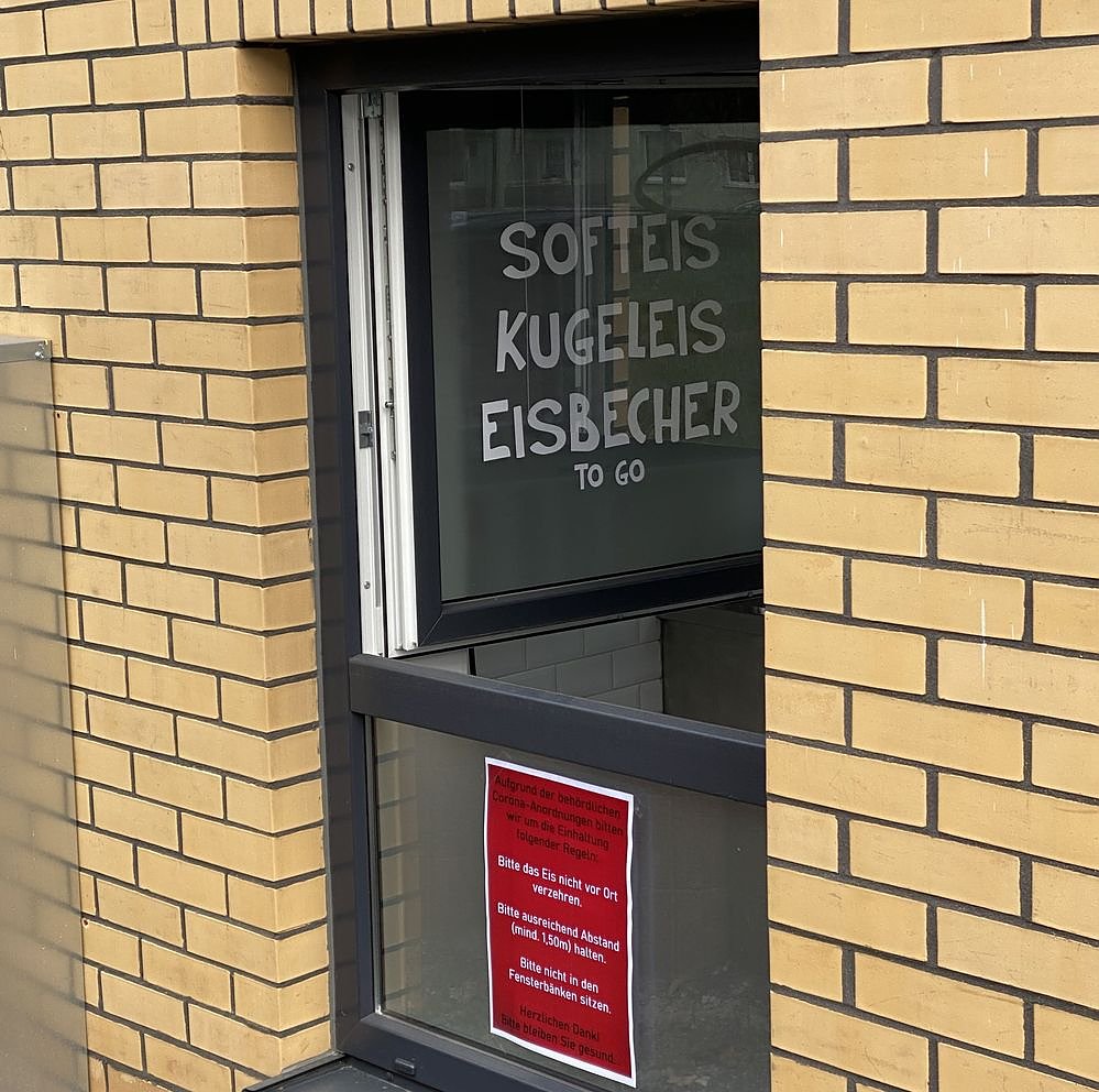 1. Momentan wird Eis nur direkt aus dem Fenster / Tür auf die Straße verkauft.