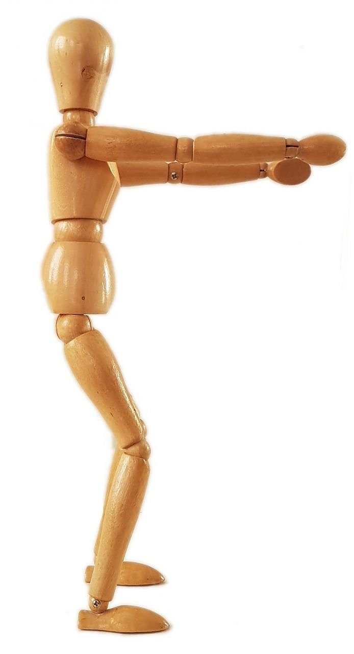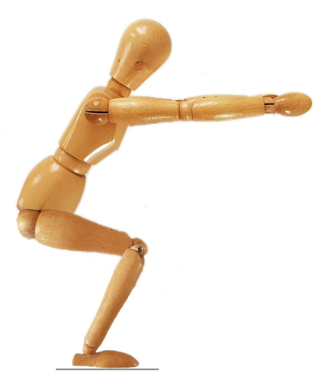 Die Beine sind schulterbreit gegrätscht, die Füße zeigen leicht nach außen, Rücken und Kopf bleiben während der Übung in einer Linie. Wir stehen stabil auf dem ganzen Fuß und beginnen mit den Beugen
