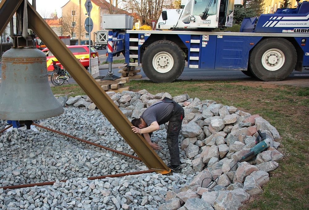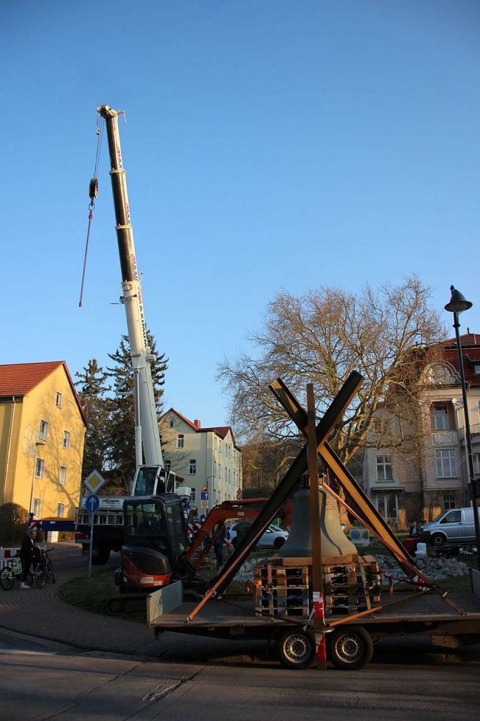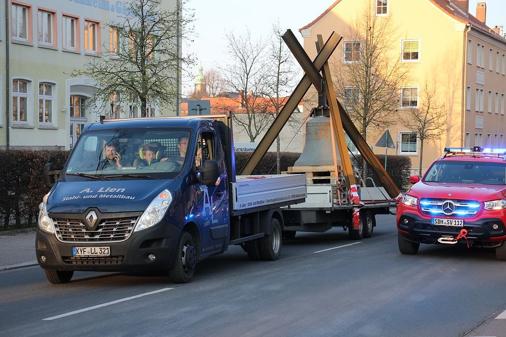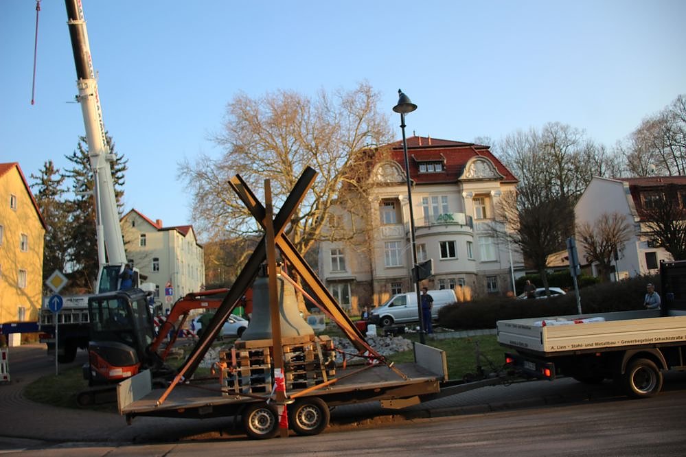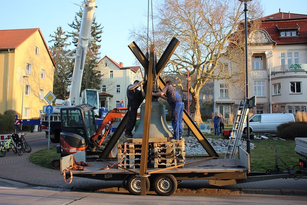 Am späten Nachmittag, am Vorabend des 8. April 2020, 75. Jahrestages der Bombardierung der Stadt Sondershausen, wurde in Sondershausen die Glocke der Trinitatiskirche an ihrem neuen Standtort aufgestellt...