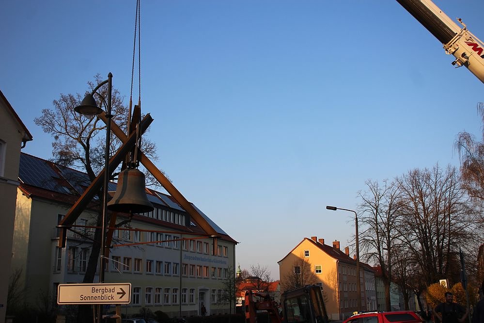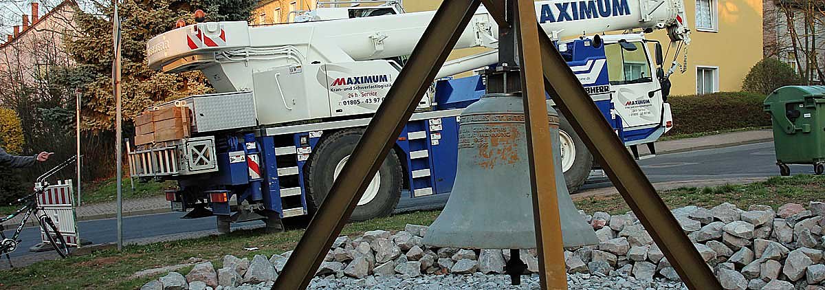Am 09.03.2020 wurde die in die Jahre gekommene Eisenglockke per Kran vom Turm der Trinitatiskirche geholt, kn berichtete ausführlich.