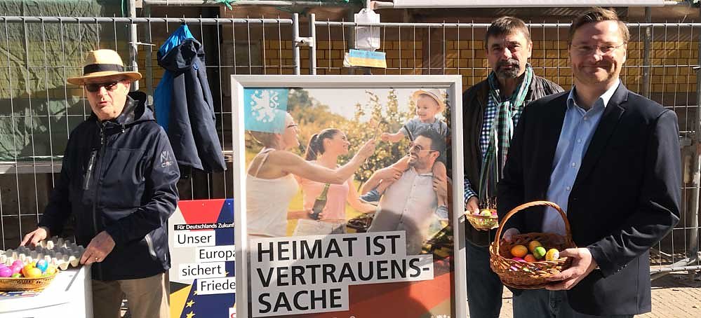 Die sehr lieb gewonnene Tradition, an Gründonnerstag in mehreren Städten des Kyffhäuserkreises Ostereier an Passanten zu verschenken, kann in diesem Jahr leider nicht stattfinden, teilt der Vorsitzende der CDU-Kyffhäuserkreis und Landtagsabgeordnete Stefan Schard mit.