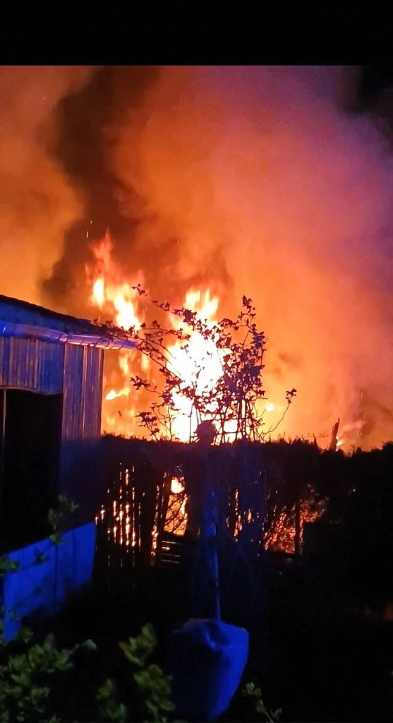 Gegen 22.20 Uhr wurden Polizei und Feuerwehren zu einem Brand in der Gartenanlage am Van-der-Foehr-Damm in Nordhausen gerufen. Trotz aller Bemühungen konnte das Niederbrennen der Laube nicht verhindert werden. Die privat an die nnz weitergeleiteten Fotos dokumentieren das Ausmaß des Feuers.