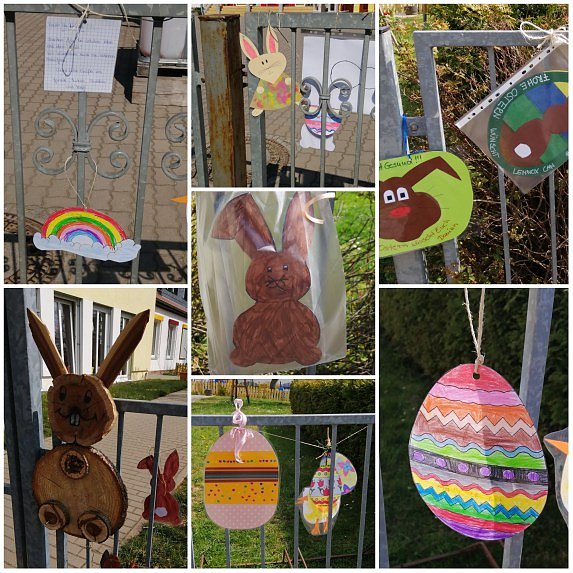 In einen "Zaun zum Staunen" haben viele kleine und große Bastler den Zaun des Heringer Kindergartens mit ihren tollen, kreativen Ideen und liebevollen Grüßen verwandelt. Schon von Weitem grüßen die bunten Eier, große und kleine Hasen oder Küken und laden zum Betrachten ein...