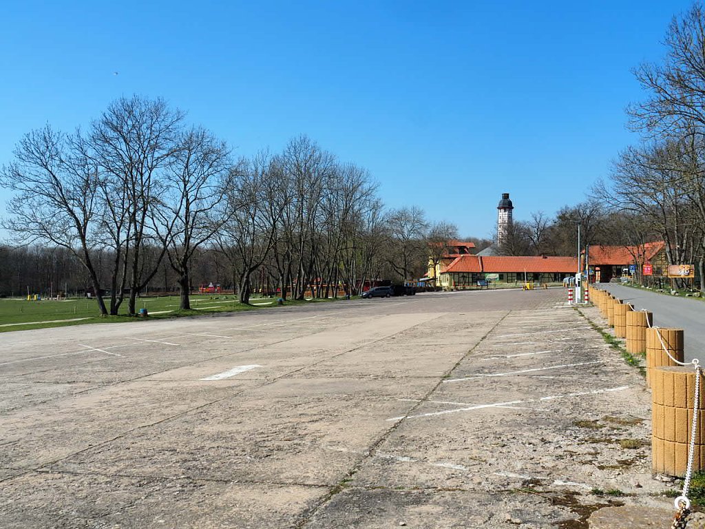 Totale Ruhe, der Parkplatz war nur von einer Handvoll Autos besetzt. Wie schade für die Betreiber. Aber es kommen wieder bessere Tage.