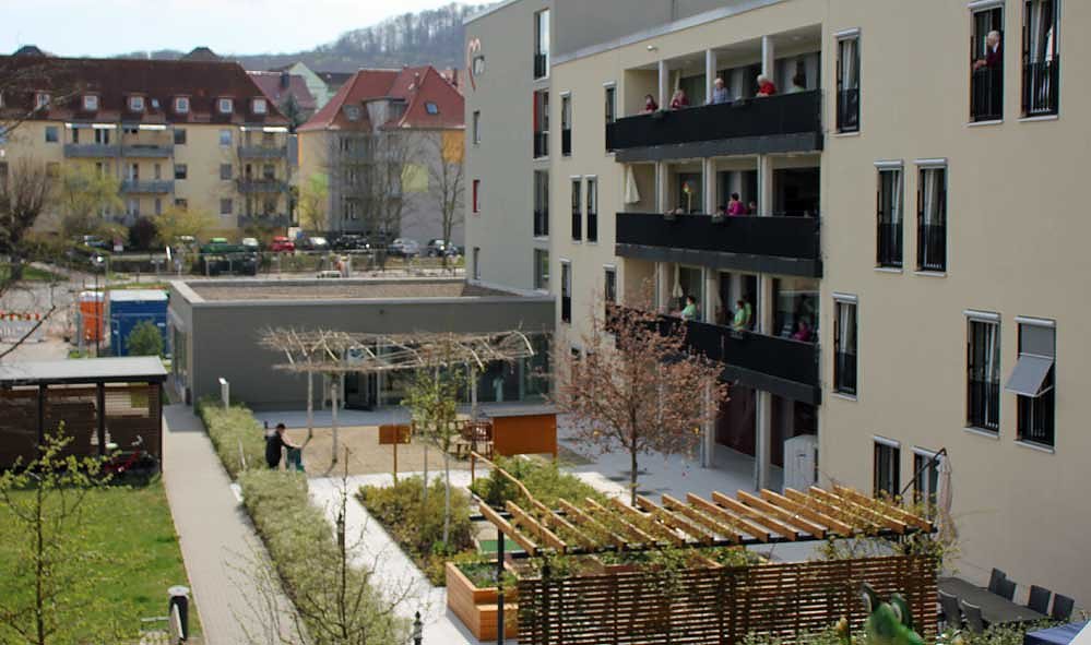 Mit seinem bunten Strauß an Melodien, von "Tulpen aus Amsterdam" oder dem "Wiener Blut" erfreute er die Bewohner und erhielt viel Beifall. Und auch die Bewohner der angrenzenden Häuser erhielten gleich ein Konzert frei Haus.