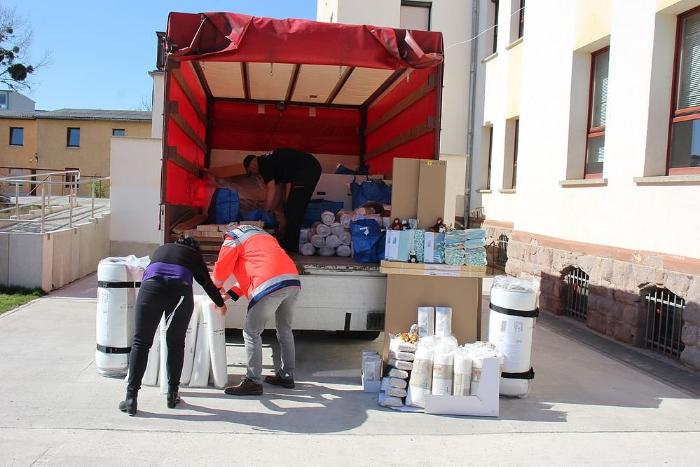 Im Fokus stand die Lieferung von Betten und Betttextilien. Auch Kuscheltiere gab es und weil Ostern gerade erst vorbei war, auch noch Schoko-Osterhasen. Pro Einrichtung gab es zwei Betten und die zugehörige Bettwäsche (15 Mal). Eine kleine Reserve (4 Betten) verbleibt in der Kreisverwaltung zur anderweitigen Verteilung, falls es notwendig wird.