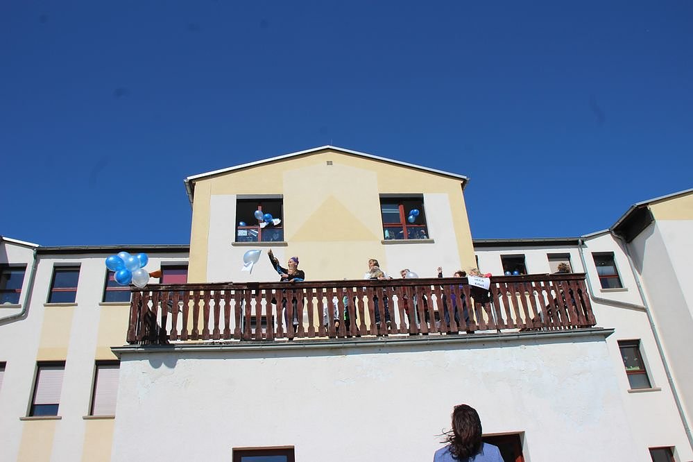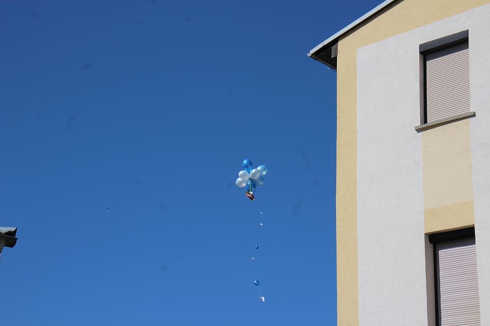 Mit kleinen Transparenten ausgestattet, ließen anwesende Kinder Luftballons in die Höhe steigen.
