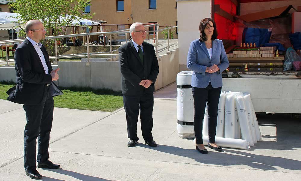 Hier die Landrätin mit dem Geschäftsführer des Diakonieverbundes Clemens Schlegelmilch und dem Verwaltungsleiter des Landratsamtes Dr. Heinz-Ulrich Thiele.