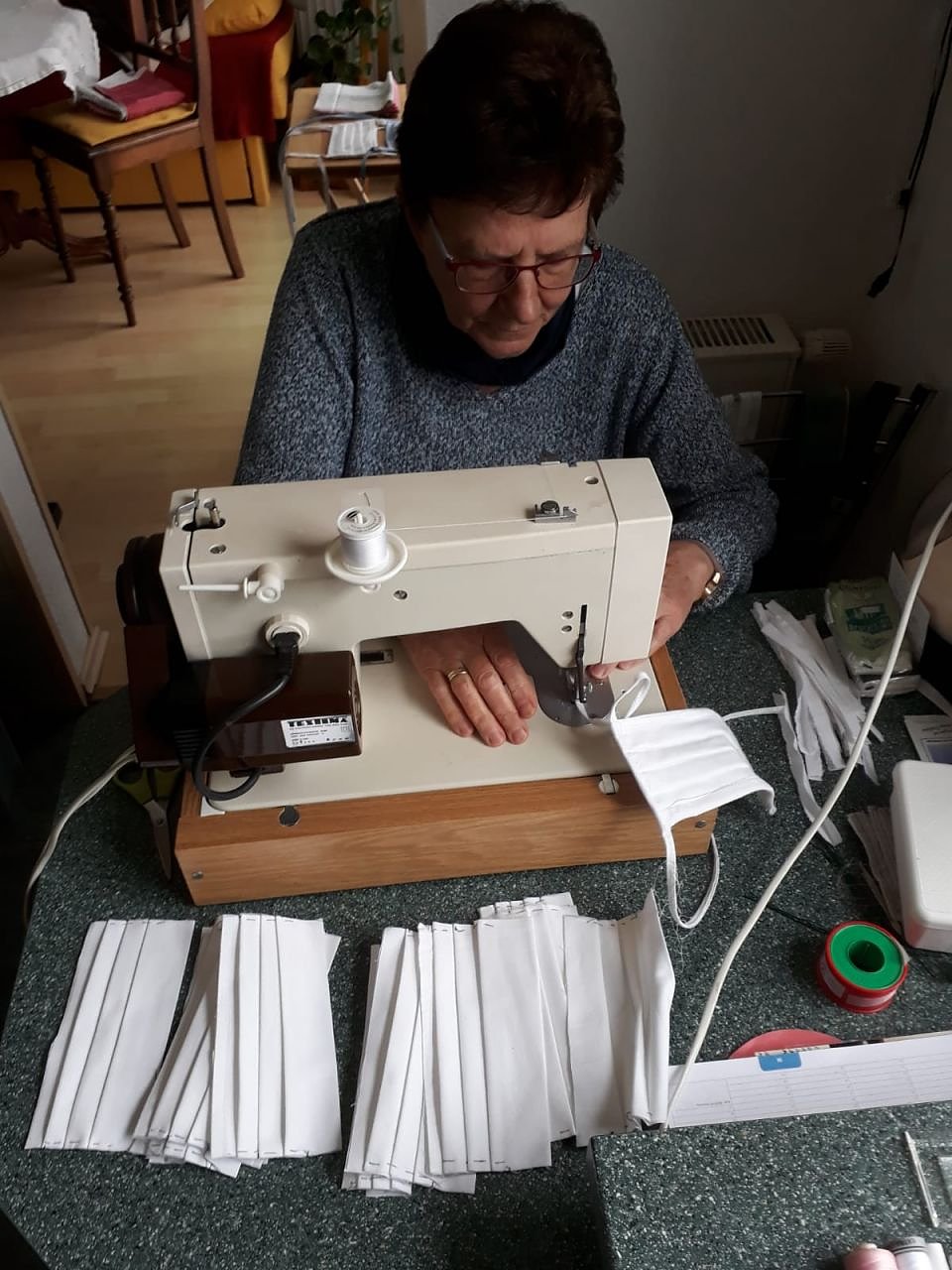 Die 72 jährige Rentnerin Frau Christa M. aus Sollstedt begann bereits Ende Februar mit der Maskenproduktion und versorgte damit Bekannte, Nachbarn und Verwandte. Nach dem der Bedarf in Sollstedt vorerst gestillt schien, nähte sie auch für die Caritas Nordhausen.