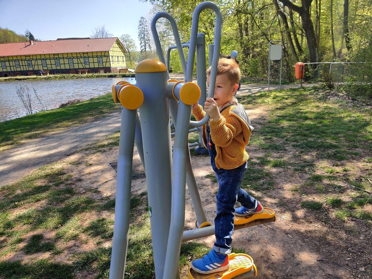 Am See dürfen nur ein paar Geräte zur sportlichen Betätigung genutzt werden. Wer sich ertüchtigen will, sollte sich danach natürlich die Hände desinfizieren.