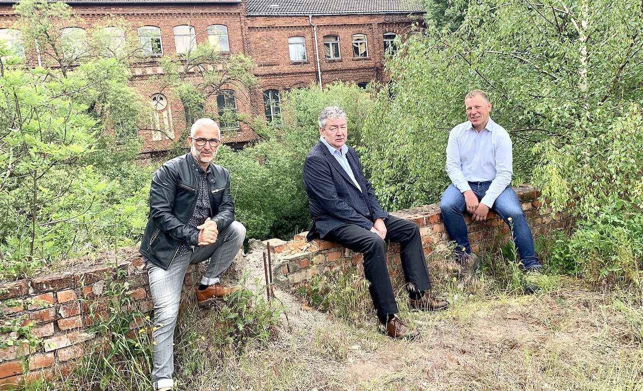 Axel Heck (links) und Silvio Wagner (rechts) kaufen von Schachtbau historische Objekte. In der Mitte Schachtbau-Geschäftsführer Michael Seifert. (Foto: privat)