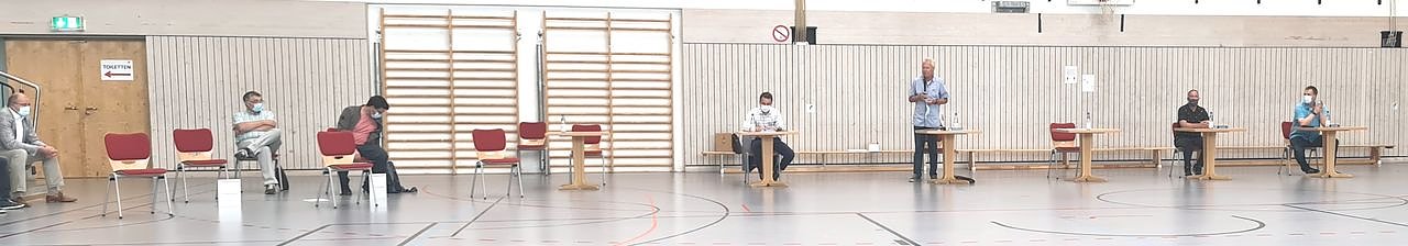 Die Wahlversammlung wird eröffnet, es wird um den entsprechenden Sicherheitsabstand gebeten, der so nicht von allem Mitgliedern eingehalten wird.