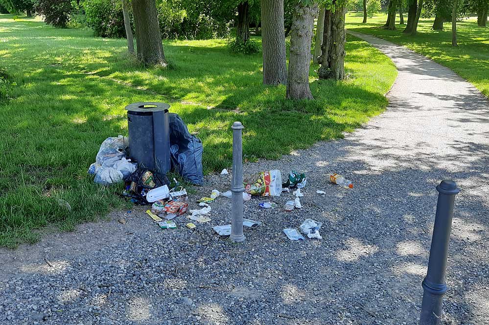 Nach dem der Bauhof bereits zum Wochenanfang alles sauber gemacht hatte, sah es am heutigen Sonntag im Schlosspark an der Brücke zur Fasanerie schon wieder so aus. Auch der kleine Parkteich war schon halbvoll und ist aktuell wieder leer.