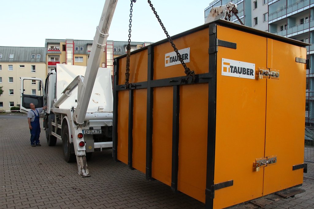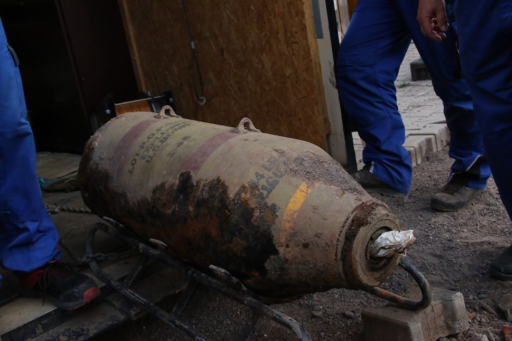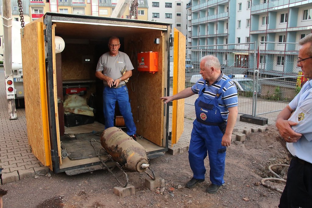 Kuriosität Nummer Zwei: der Sprengkörper war in erstaunlich gutem Zustand. Lediglich die Unterseite ist mit Rost überzogen, der Rest hat die Jahrzehnte in trockener Erde ohne große Verwitterungsspuren überstanden. Schriftzüge und Markierungen an der Oberseite sind noch deutlich zu erkennen, darunter auch das "Produktionsdatum" der Bombe, die im Januar 1945 vom Band gegangen sein muss. Ein derartiger Erhaltungszustand ist ein seltener Anblick, selbst für die Profis der Firma Tauber. Bevor der Sprengkörper im gesicherten Container verschwand, machte Andreas West noch einen Vorschlag: die 120 Kilogramm Sprengstoff werden von den Experten entfernt und die leere Hülle als Erinnerungsstück und Mahnmal an die Stadt übergeben.