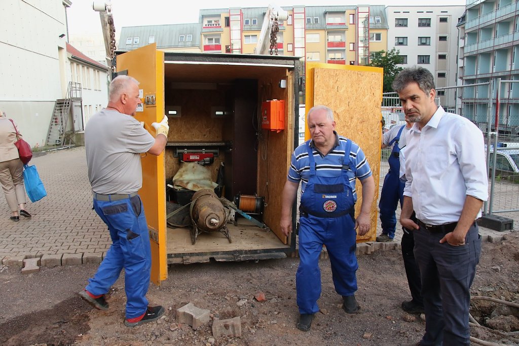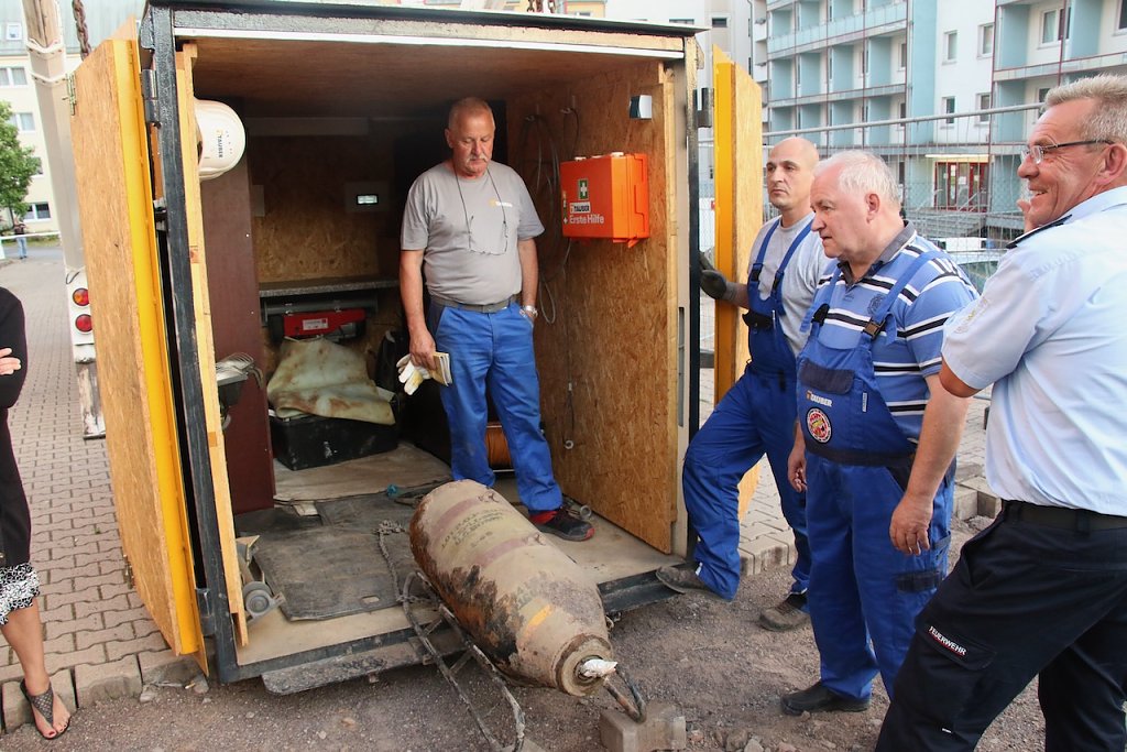 Das Resümee fällt also in der ersten Nachbetrachtung positiv aus. Ein paar Kuriositäten am Rande hatte der heutige Tag aber dennoch zu bieten. So stieß man nun bereits zum zweiten mal in Folge auf eine amerikanische Fliegerbombe. Verwunderlich, wo es doch die britische Royal Air Force war, die Nordhausen am 3. und 4. April 1945 bombardierte. Sprengmeister West hat eine Erklärung: die amerikansiche Bombe ist aus einem britischen Flugzeug gefallen. "Tatsächlich haben die Bomben unterschiedliche Aufhängungen, zwei oben und eine unten. Sowohl die Amerikaner als auch Briten konnten die Bomben des jeweils anderen mitnehmen und abwerfen".