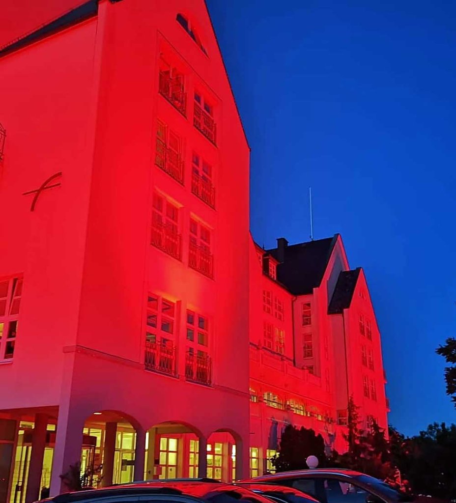 Auch in Bad Frankenhausen schloss man sich der Aktion "Night Of Light" an und tauchte den "Schiefen" von Bad Frankenhausen und das Hotel "Residenz" in rotes Licht. Die Aktion Night of Light - Ein flammender Appell an die Politik zur Rettung der Veranstaltungswirtschaft die deutschlandweit lief...