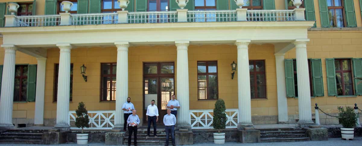 Obere Reihe: Jonas Urbach (Mitglied Landtag), Joachim Kreyer (Vorsitzender Förderverein Schlossmuseum Sondershausen, Stefan Schard Landtagsmitlied aus Sondershausen)