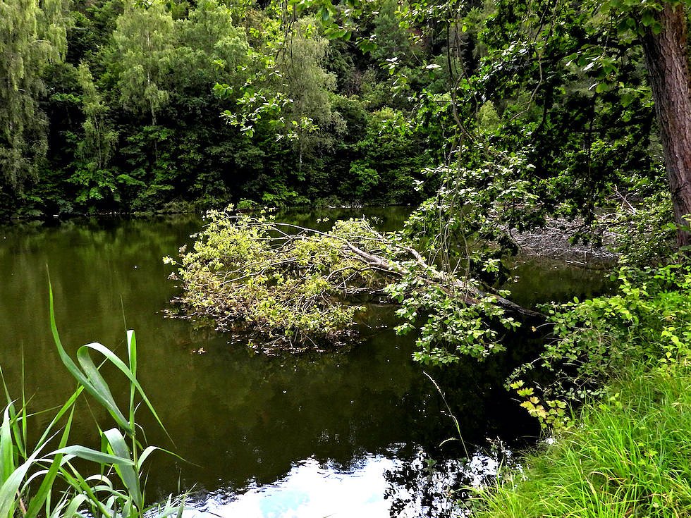 Andere beschwören, dass hier vor langer Zeit ein Schloss stand, in dem Feierlichkeiten abgehalten wurden, bis eines Tages ein Bettler, den der grausame Hausherr ungefiltert rausschmeißen wollte, den Ort verfluchte und das Schloss im Teich versank. Allerlei Fabelwesen sollen hier ihr Unwesen treiben und wenn wir uns die Fotos von Peter Blei anschauen, so können wir vielleicht das eine oder andere erkennen.