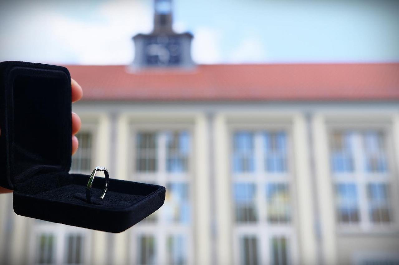 Mit verbunden Augen hatte Christian Weisbrod seine Janine quasi an den Ort des Kennenlernens zurück entführt und ließ sie bis zum Schluss in dem Glauben, dass er sie zur Feier des dritten gemeinsamen Jahrestages zum Essen ausführt.