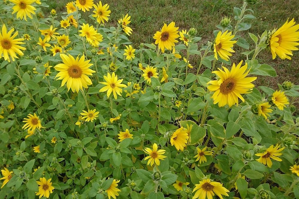 In strahlendem Gelb recken sich die unzähligen Blüten der Sonne entgegen. Blühstreifen in Sondershausen in einem Projekt vorgestellt vom HOC...