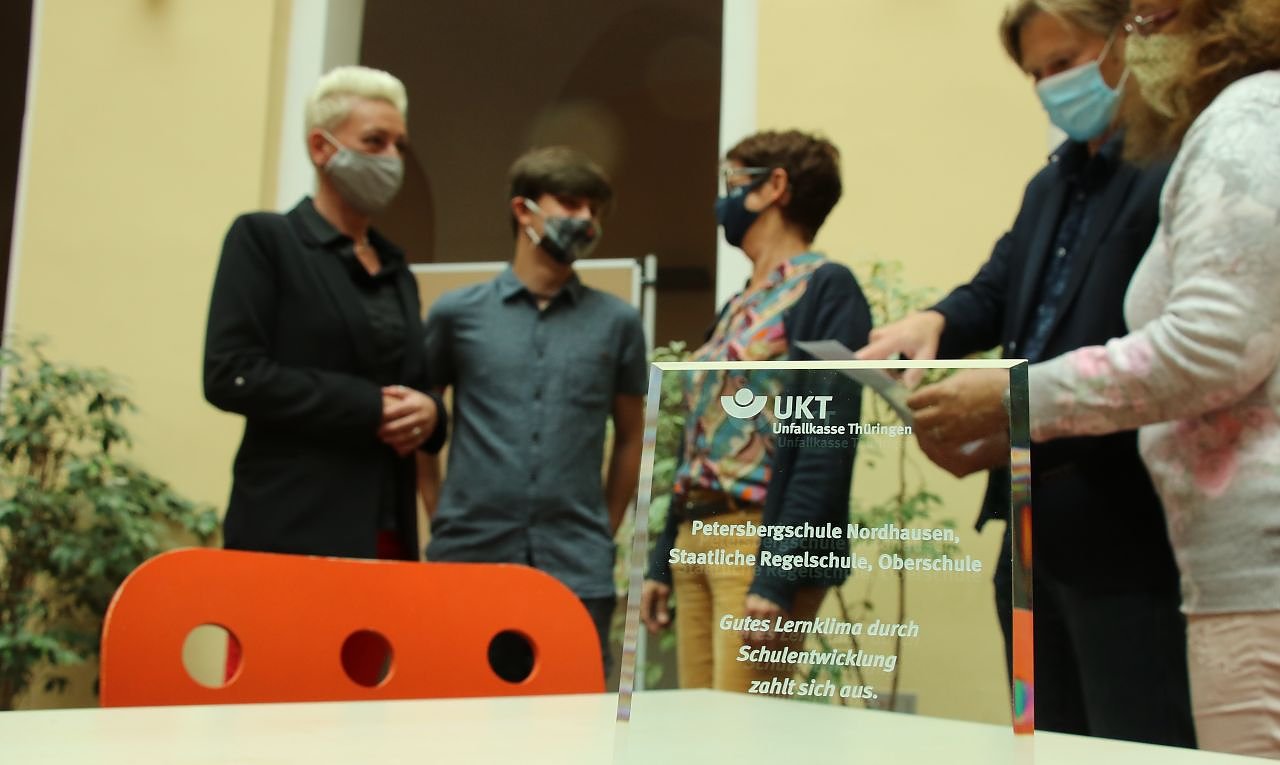 In manchen Top 10 möchte man nicht sein, zum Beispiel wenn es bei der Auflistung um die Zahl der Unfälle in Schulen geht. An der Petersbergschule rangierte man zwischen 2014 und 2017 im oberen Bereich eben einer solchen Rangliste, die von der Unfallkasse geführt wird. Vor fünf Jahren führte man deswegen den Schulentwicklungspreis ein. Das Projekt begleitet je zwei Schulen aus den Thüringer Schulamtsbereichen über drei Jahre hinweg mit dem Ziel die Zahl der großen und kleinen Unfälle zu senken.