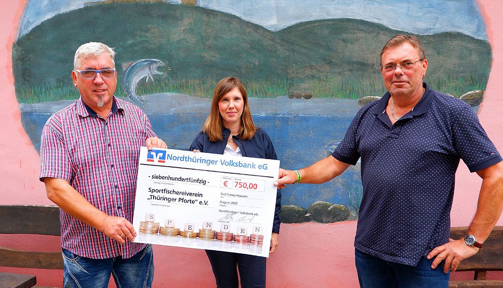 Am heutigen 05.09.2020 übergab die Nordthüringer Volksbank einen Scheck in Höhe von 750 Euro dem SFV Thüringer Pforte e.V Bad Frankenhausen im Vereinsheim an den Schwanenteichen, wie der Verein meldet.