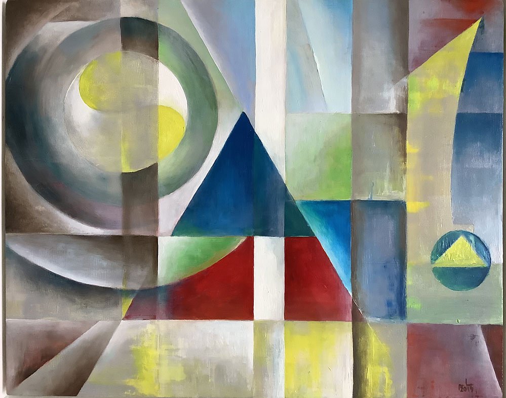 Foto: Ralf Behrend; Bildurheber: Ralf Behrend Verschränkte Geometrie Malerei von 2019, Öl auf Leinwand;