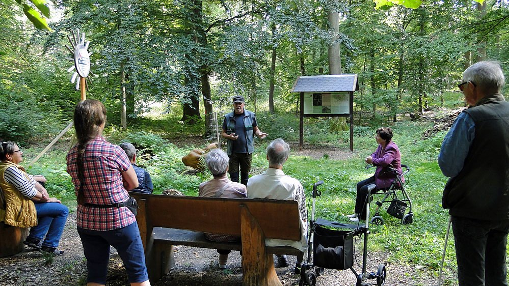 Sehbehinderte mit dem Förster unterwegs zur Mutterblutbuche. Von der Exkursion dieser Bericht vom Blinden- und Sehbehindertenverbandes e.V. (BSVT)...