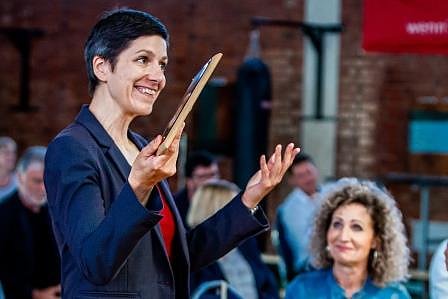 Die Schlüsselübergabe von Inge Klaan (SWG) an den Vereinsvorsitzenden Prof. Dr. Heiser wurde überflügelt von einer emotionalen Namensgebung. Diesmal wurde ein Lebenswerk bereits zu Lebzeiten geehrt. Die Halle erhielt den Namen: