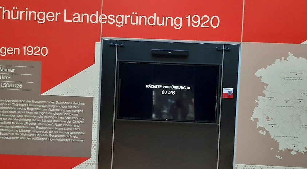 Neben Informationstafeln erinnert auch ein Film des MDR an die Gründung. Schön dabei, mit einer Anzeige wird informiert, in wie viel Minuten der Film wieder startet.