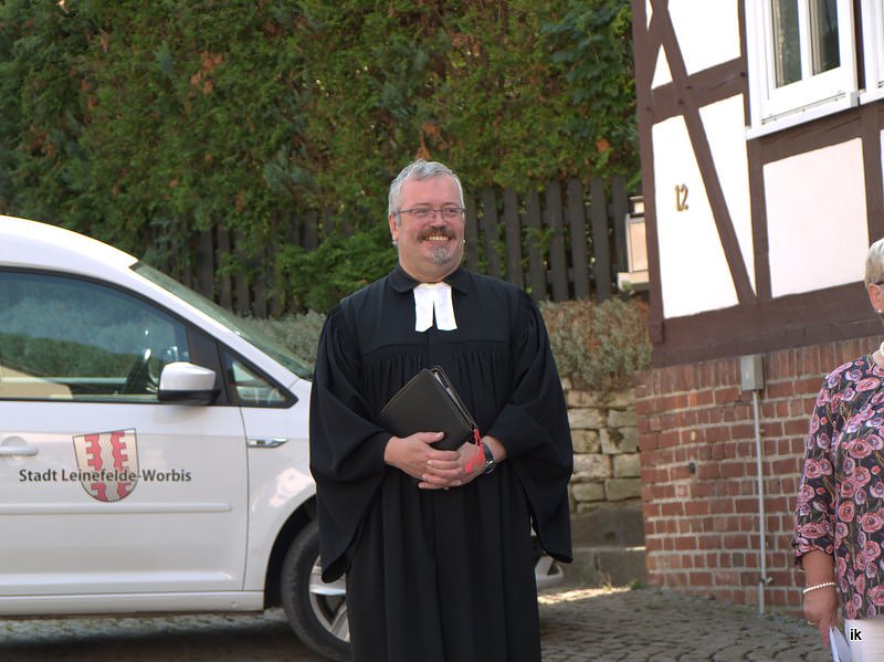 Pfarrer Schmudde erinnerte am Freitag auf den 11. September vor 19 Jahren, wo Feuerwehrleute in New York bei dem schweren Anschlag ihr Leben verloren. Er fragte die Wintzingeröder, wie es ihnen gehe bei einem Einsatz, wenn vielleicht Kinder in der Nacht in Schlafanzügen tränenüberströmt auf der Straße vor dem brennenden Zuhause stehen würden. Möge das neue Auto ein Garagenwagen bleiben, müssen sie aber damit raus, dann wünschte er den Feuerwehrleuten stets eine unfallfreie Fahrt und segnete die 18 Kameraden und eine Kameradin der Ortswehr. Gemeinsam beteten alle und sangen das Lied Großer Gott, wir loben Dich” - alle elf Strophen. Nach dem Schlussgebet und dem Segen sagte der Pfarrer, Gott sei mit denen, die mit diesem Fahrzeug unterwegs sind und mögen sie immer die richtigen Entscheidungen treffen.