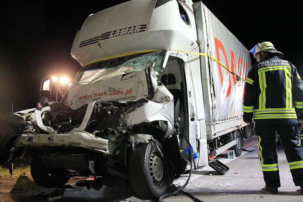 Etwa 500 Meter vor dem Rastplatz Kesselberg fuhr der Fahrer aus bisher ungeklärter Ursache in das Heck eines vor ihm fahrenden Sattelaufliegers. Der Fahrer des Transporters wurde in seinem Fahrzeug eingeklemmt und musste mit schwerer Technik aus dem Fahrzeug befreit werden. Er kam mit schwersten Verletzungen in das Südharz Krankenhaus Nordhausen.