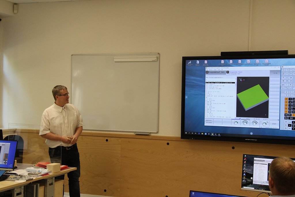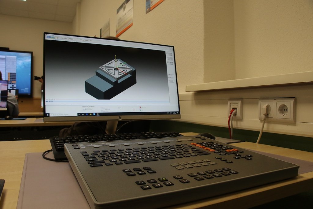 Selber Hand anlegen im klassischen Sinn müssen die dann kaum noch, die eigentliche Qualität der Arbeit entsteht am Computer, das Kerngeschäft der Herstellung übernimmt dann die Maschine, erklärte heute BBZ-Chef Olaf Salomon. Für den Laien mag das einfacher klingen, als es tatsächlich ist. Jede Bewegung der Maschine, jeder Arbeitsschritt am Bauteil muss minutiös geplant und programmiert werden. Damit das gelingt, muss der Anwender mit der Maschine kommunizieren können, muss ihre Sprache sprechen, genauer ihre Programmiersprache. Die kann je nach Hersteller von Maschine zu Maschine variieren.