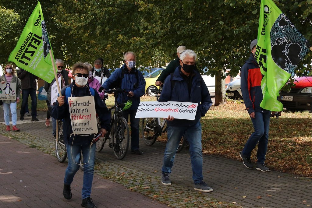 Neben den beiden Organisatoren waren auch Vertreter des Naturschutzbundes BUND, die Fahrradfreunde des adfc, der Verein Schrankenlos, Verfechter der "Fridays for Future" Bewegung und des Bündnisses "Südharz bleibt natürlich" zur Demo gekommen. Für letztere sprach Manfred Kappler. Gegen Corona werde es irgendwann ein Gegenmittel geben, in Sachen Klimawandel sei das fraglich. Schuld sei vor allem der Mensch, der die Natur in zunehmenden Maße ausbeute und zerstöre. Die Folgen könne man im Harz beobachten, der Wald sei inzwischen ein Intensivpatient, der buchstäblich am Tropf hänge. "Den Kampf gegen den Borkenkäfer haben wir verloren. Aber Hitze, Trockenheit und Schädlingsbefall sind nur Symptome, nicht die Ursache. Das ist der Mensch", sagte Kappler, gerade auch in Deutschland müsse man an der Reduktion des CO2 Ausstoßes ran.