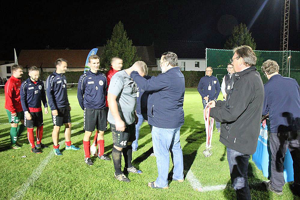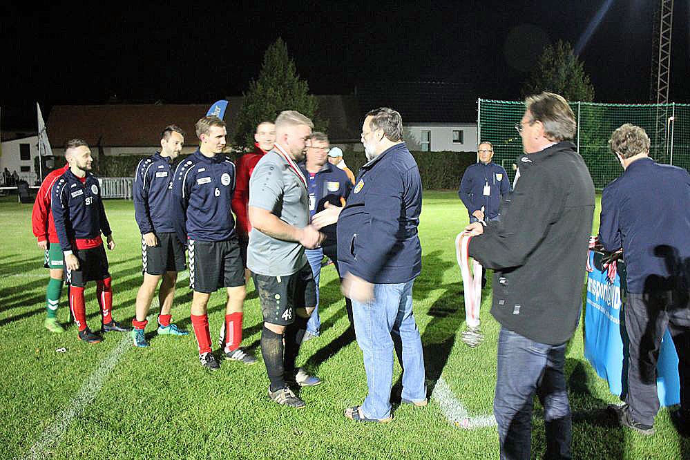 Der Glückwunsch geht an den Kreispokalsieger VfB Artern, der dazu noch einen Sack von Fußbällen vom Sponsor Teamsport Nordhausen und 200 Liter Bier vom Sponsor Krombacher. Aber auch Salza ging nicht leer aus, denn es gab 100 Liter Bier.