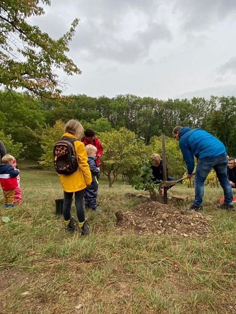 Weitere Vereinsmitglieder pflanzten, unter den wachsamen Augen der Wanderer und einem kleinen Lied, einen Aprikosenbaum. Damit wollen wir uns zum einen bedanken, denn die Naturparkstation ist immer ein lohnenswertes Wanderziel für Familien und zum anderen wollen wir einen nachhaltigen Beitrag leisten, damit dies noch lange so bleibt.