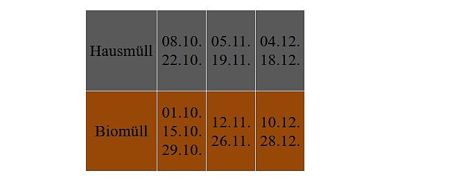 Wir bitten um Ihr Verständnis, dass es aufgrund der weiträumigen Umleitung nicht möglich ist vollständig am Tourenplan festzuhalten. Für die Orte Seega und Günserode gelten für die Entsorgung von Haus- und Biomüll folgende neue Termine:
