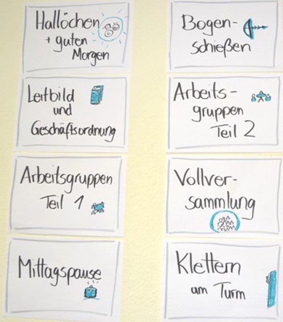 Moderiert wurde die Tagung von Simone Rieth, Riethwerk Erfurt, welche schon von Beginn der Entstehung des KJB als Prozessmoderatorin mitwirkt. Auf der Tagesordnung standen neben zahlreichen Gruppenarbeiten und intensiven Arbeitsprozessen auch die Stärkung des Selbstwertgefühls sowie der Teamfindung beim Bogenschießen, gemütlichen Lagerfeuer und gemeinsamen Bowling. Dabei wurde der KJB von der Jugendbildungsreferentin des KiEZ, Jessica Rohde, unterstützt.
